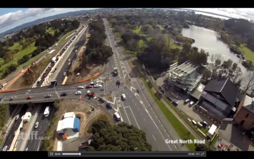 AT propose the removal of six mature Pohutukawa trees from the side of Great North Road on either side of the St Lukes intersection. There is a good summary (including a one-minute video) here. This is to allow for two lanes of traffic to turn on to the North Western Motorway on the eastern side of the St Lukes bridge intersection. The site is on the Local Board’s boundary with the Albert-Eden Local Board and on the western side of the intersection the boundary runs along Great North Road as far as Motions Road. The reserve in which the trees stand, 820 Great North Road, is Parks land and the Waitematā Local Board is the landowner.