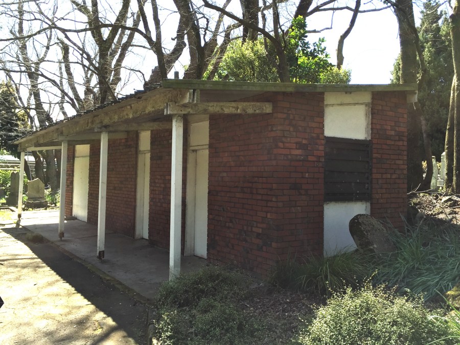 Symonds Street Cemetery maintenance building by the Jewish Section of the cemetery.