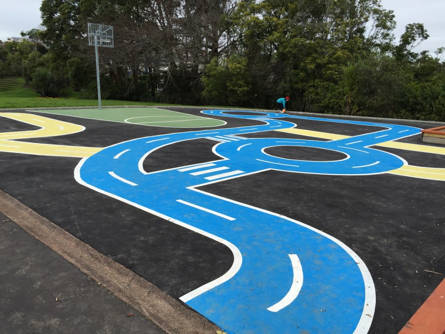 Learn-to-ride area and basketball court