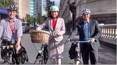 (l to r) Member Dempsey, Deputy Chair Coom, Member Tava outside Town Hall after addressing the Governing Body